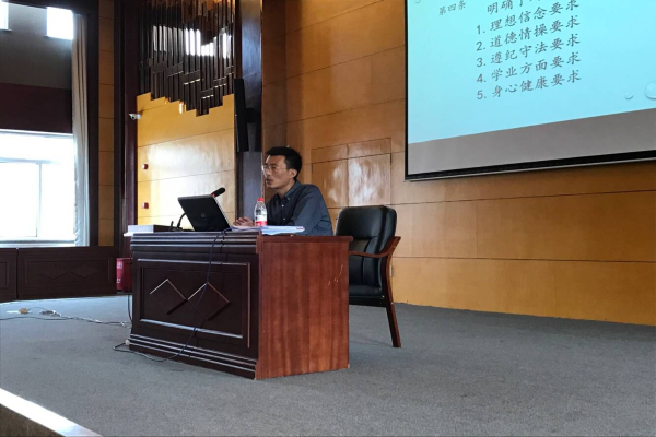 张猛介绍了我校学生工作的现状,介绍了正确理解修改《普通高等学校学生管理规定》的背景及原则,全面把握主要修改内容和制度创新点,并希望本次培训会能在辅导员尽快融入环境、明确工作内涵、提升业务能力、增强职业归属和认同方面起到积极作用。他还依据教育部41号令,结合我校实际,对修改后的《学生手册》进行解读、对《沈阳城市建设学院学生管理规定》、《沈阳城市建设学院学生纪律规定(试行)》、《沈阳城市建设学院学生申诉处理办法(试行)》、《沈阳城市建设学院学生荣誉称号评选办法(试行)》、《沈阳城市建设学院优秀学生奖学金评选办法(试行)》等文件做了详尽的说明阐释。相关政策规定的细致解读、事务性工作的规范梳理,使辅导员们全面认识和了解工作职责、工作方式、工作技能,为下一步更好地开展工作奠定良好基础。