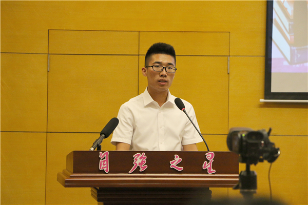 张猛对本次活动进行总结,他希望自强之星能充分发挥榜样示范作用,做到“聚是一团火,散是满天星”,引导更多的学生向他们学习,走向自强之路,在最美的年华勇敢的去追寻属于他们最美的梦!力争做到“点亮一盏灯,照亮一大片”的良好影响。