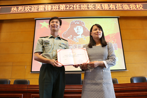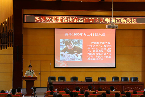 报告会上,纪委书记、副校长李厚艳为吴锡有同志颁发了“校外辅导员”荣誉聘书。吴锡有同志结合自己在雷锋班的经历以及自身成长生活的点滴,向与会师生诠释了当代雷锋精神——雷锋精神不是外表的浮夸,而是根植于内心的自律、强大、坚持与自信。他告诫与会学生要存感恩之心,让生命更有价值。报告会最后,鼓励全体学生学习、发扬雷锋精神,做到心中有雷锋,踏着雷锋的足迹不断前行,学雷锋的人永远年轻。