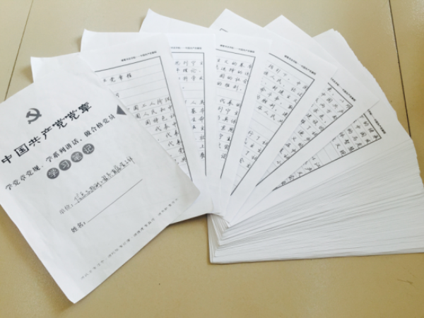 活动期间,全体党员积极参与,在“学党章党规、学系列讲话、做合格党员!”的氛围下,在严肃庄重的气氛下,每个人都怀着一份崇敬之心认真抄写《中国共产党党章》。党员们的书写线条优美,笔势俊逸,笔力劲挺。满含着全体党员心血的一本《中国共产党党章》在大家的齐心协力下顺利完成。