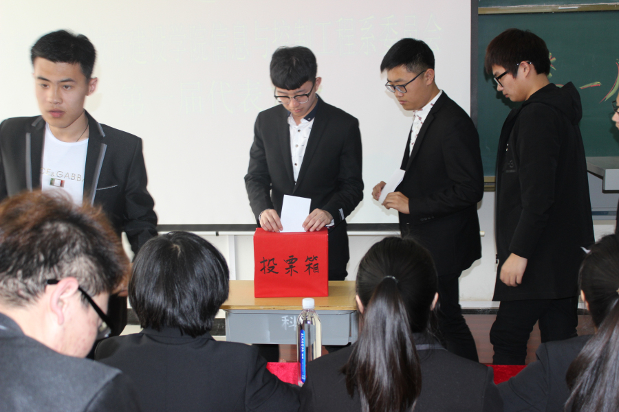 本次大会共有两项议程:选举中国共产主义青年团沈阳城市建设学院信息与控制工程系委员会委员和选举中国共产主义青年团沈阳城市建设学院委员会第一次代表大会代表。大会在庄严的国歌声中开始,首先由工作人员为在场人员宣读选举办法草案,后经各代表讨论后通过本草案,确定了选举办法,本次选举采取无记名投票方式。第一项选举从六名候选人中选举五名委员。在选举过程中各位代表本着严谨、公正的态度,经过严肃认真的讨论各投出了郑重的一票。本着公平、公正、公开的原则,由三名工作人员监票,由十名工作人员计票,当场宣布投票结果。最终,王策、贲超、胡译方、韩婷雯、靳凯(以姓氏笔画数为序排列)五人光荣的当选共青团沈阳城市建设学院信息与控制工程系委员会委员。会议顺利的通过了第二项议程,工作人员向各位代表宣读了当选共青团沈阳城市建设学院委员会第一次代表大会代表的名单。