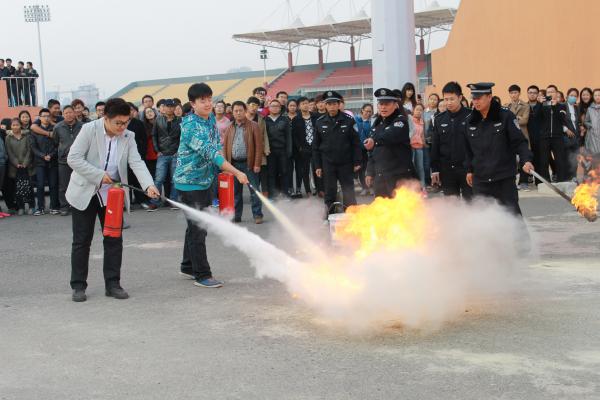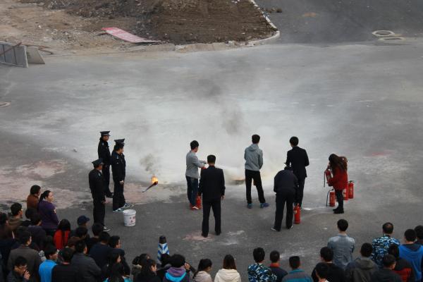 演习开始前,保卫处消防科干事为在场师生讲解了基本消防知识以及迅速灭火的技巧,并对扑救初期火灾的干粉灭火器如何维护保养及使用进行了现场演示,现场教职员工和学生都非常地认真听讲和学习,精彩的演讲和演练指导赢得了在场师生的阵阵掌声。在练习阶段,很多教职工和学生主动练习使用灭火器,并能够正确地使用灭火器将燃着的油盆扑灭。整个演练过程井然有序,没有意外事故发生。