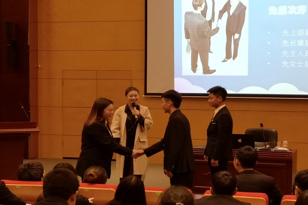 项一涵向青马学员讲解了学习礼仪的目的和礼仪的四大体现形式,并亲自教授了“优雅形体训练”的内容。她讲到,眼神训练包括得体注视交谈对象的部位,注视时间长短等方面,行礼训练以握手礼仪和握手顺序为主要内容。这一训练内容体现出礼仪在社交当中的重要性。最后,项一涵对本次课程进行了总结,她表示,礼仪不仅仅局限于书本上的条条框框,更重要的是要学会运用礼仪与人沟通交流,体现自身魅力的同时给人一种亲和力,掌握礼仪的人会是一个正能量的人。