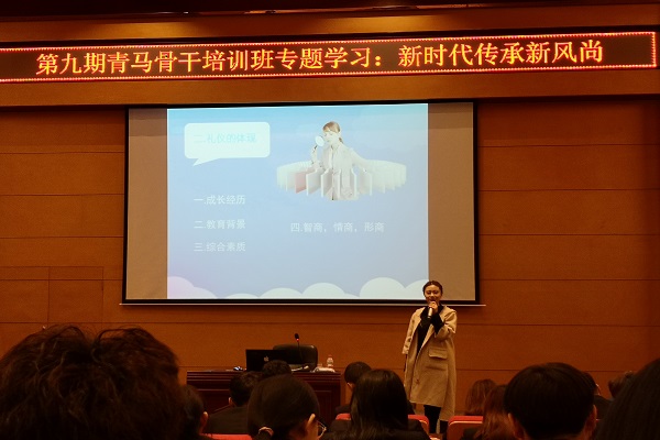 为了提高青马学员的自身修养,加强青马学员的行为规范,提升青马学员的沟通与协调能力,近日,有幸邀请到中国形象设计协会副秘书长项一涵为青马学员进行“新时代传承新风尚”的礼仪培训课程。