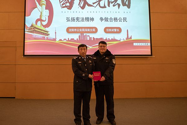深入贯彻落实党的十九大精神和习近平总书记关于宪法的重要论述精神,进一步提高法制宣传教育实效性,强化学生的法制观念,我校团委联合保卫处于12月4日在国际交流中心306报告厅举办了“全国法制宣传日”宣讲活动。保卫处副处长王强、沈阳市公安局浑南分局浑南新城派出所民警任铁斌、保卫处治安科科长金有东、团委干事刘红阳和学生代表参加此次活动。
