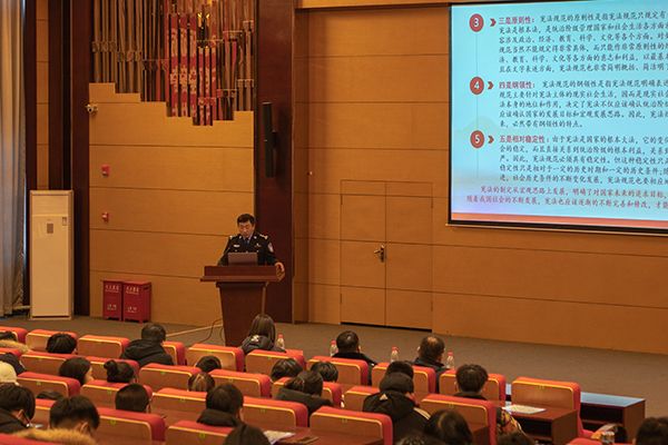 在宣讲会上,任铁斌进行了以“深入开展法制宣传教育,大力弘扬社会主义法治精神”为主题的宣讲,向学生们普及了宪法的基础概念,讲解了治安管理处罚法的条例和电信诈骗的常见圈套,并指出了严防电信诈骗,抵制非法网贷的重要性。任铁斌表示,法治是人类文明进步的重要成果,一个国家只有形成法治精神、顺应时代潮流的法治体系,人民才能有尊严的生活,国家民族才能振兴。